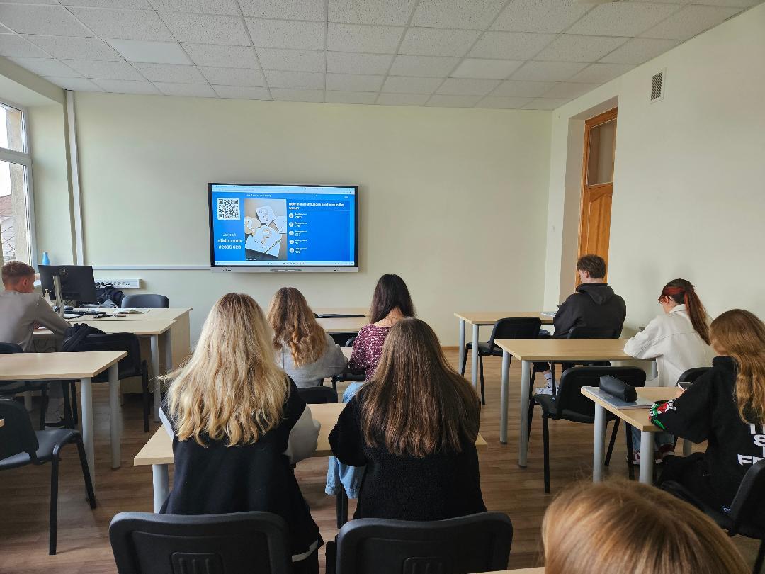 Šiuo metu pasaulyje skaičiuojama 7,000 įvairių kalbų. Kaip kalba veikia mūsų pasaulio suvokimą ir mąstymą? Ar tai reiškia, kad yra 7,000 būdų, o gal dar daugiau, suvokti pasaulį? Ar įmanoma suvokti sąvoką, kai kalboje nėra atitikmens, kaip pavyzdžiui portugalų kalboje „saudade“? Šiuos ir kitus klausimus, jungdamiesi prie Europos kalbų dienos renginių Kolegijoje, aptarė Ekonomikos fakulteto studentai kartu su anglų kalbos lektore Migle Ginaityte paskaitos metu. Studentai žiūrėjo filmą jutubo kanale ‘‘BBC Ideas: Do We Think Differently in Different Languages‘‘, kuriame lingvistai ir neuromokslininkai supažindino su labai įdomiomis teorijomis ir moksliniais tyrimais apie įvairias pasaulio kalbas. Studentai ir patys noriai įsitraukė į analizę, nagrinėjo šias teorijas ir siūlė savo pavyzdžių, o Erasmus+ programos studentė Alona iš Ukrainos pateikė pavyzdžių anglų, prancūzų, rusų ir ukrainiečių kalbomis. Dėstytoja Miglė G. supažindino studentus su profesorės Leros Boroditsky, vienos iš kalbinio reliatyvumo teorijos kūrėjų, kalba „How Language Shapes the Way We Think“, kuri buvo skirta namų darbams ir yra puikus pavyzdys ne tik anglų kalbai tobulinti, bet ir pateiktims rengti bei viešai pristatyti.