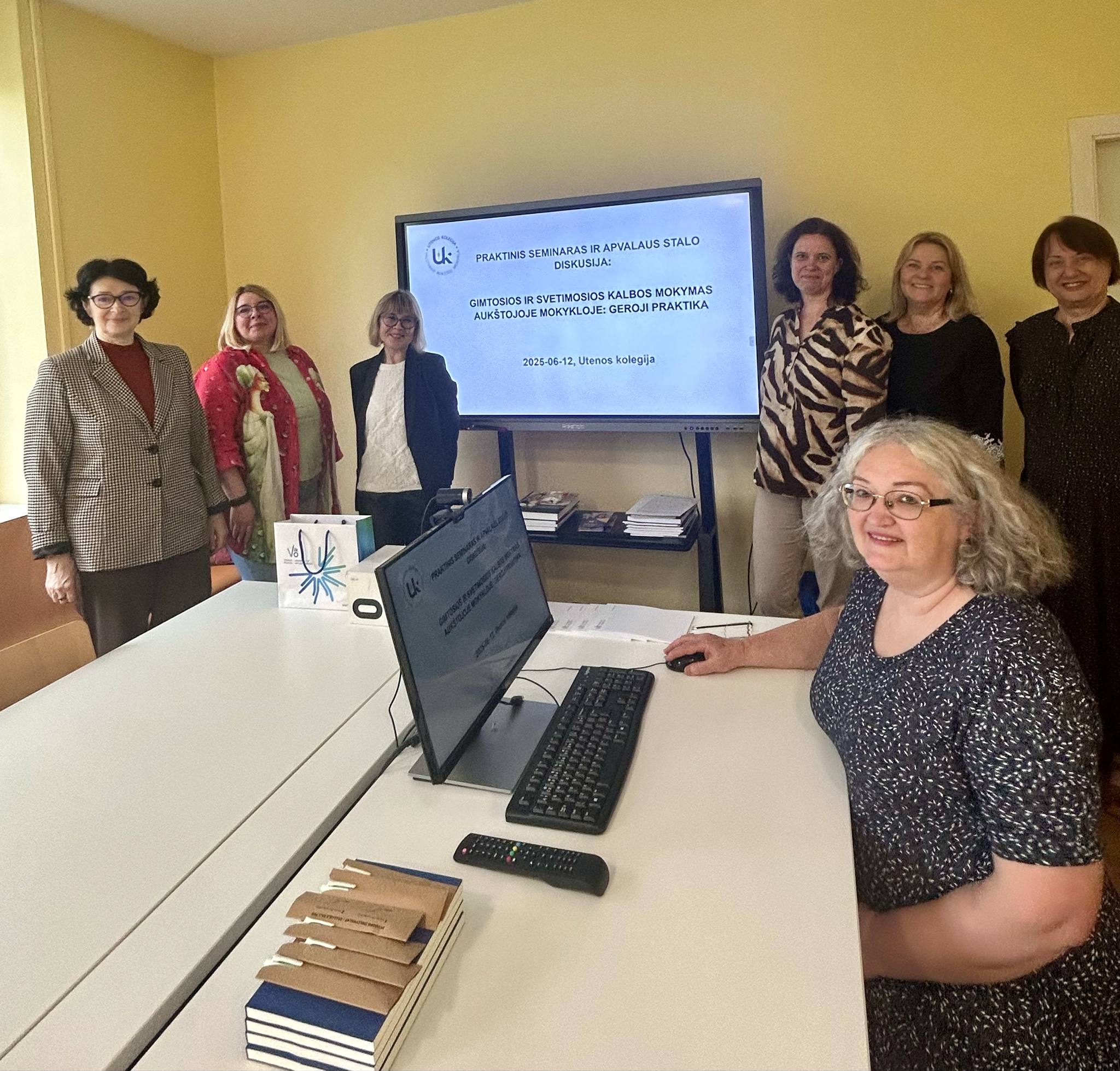 2025 m. birželio 12 d. Vilniaus kolegijos lektorės Beata Gervickaitė, Violeta Žemaitienė ir Jūratė Patackaitė dalyvavo seminare ir apskritojo stalo diskusijoje „Gimtosios ir svetimosios kalbos mokymas aukštojoje mokykloje: geroji praktika“, kuris vyko Utenos kolegijoje.