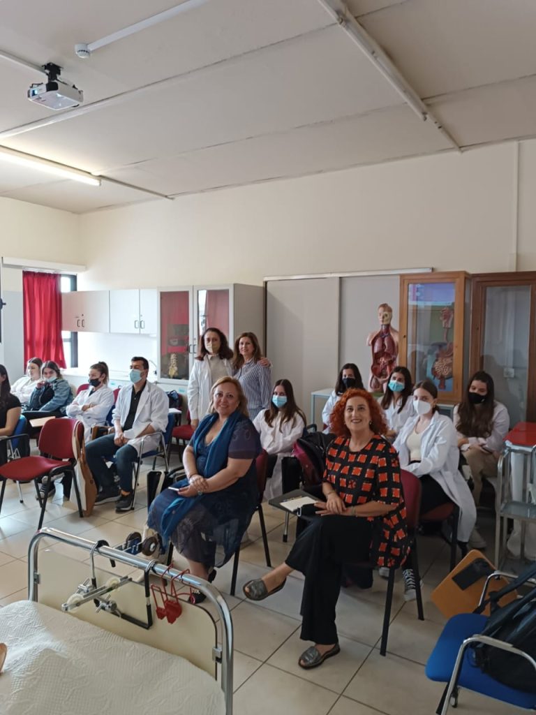 Susitikimų su Slaugos fakulteto lektoriais bei administracijos atstovais metu buvo aptarti įvairūs sveikatos specialistų rengimo aspektai Graikijoje ir Lietuvoje, studentų mainų klausimai. Šis vizitas buvo ir puiki proga susipažinti su priimančio universiteto studente Dimitra, kuri atvyks rudens semestrui į Vilniaus kolegijos Sveikatos priežiūros fakultetą. Studentė sužinojo naujų faktų apie Lietuvą ir Vilniaus kolegiją, lektorė Virginija Andriusevičienė atsakė į jai rūpimus klausimus.