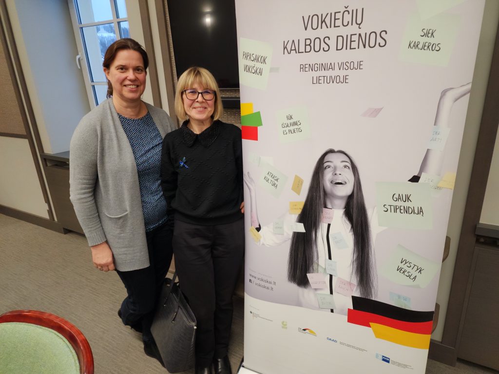 Vilniaus kolegijos Užsienio kalbų centrui atstovavo vokiečių kalbos lektorė Violeta Žemaitienė ir Centro vedėja, vokiečių kalbos lektorė Jūratė Patackaitė. Vilniaus kolegijos Verslo vadybos fakultete trijų studijų programų studentai: Organizacijų ir Turizmo vadybos bei Viešbučių bei restoranų verslo, iki dabar turi galimybę mokytis vokiečių kalbos kaip antros užsienio kalbos ir ji šių studijų programų studentams yra privaloma. Likusių fakulteto studijų programų studentai turi galimybę vokiečių kalbos mokytis, pasirinkę ją kaip laisvai pasirenkamą modulį. Tačiau kituose fakultetuose vokiečių kalba nėra siūloma. Nuo 2024 m. pavasario, įgyvendinant projektą, kuriuo bendrus laisvai pasirenkamus dalykus galės rinktis visų Kolegijos fakultetų studentai, Užsienio kalbų centras planuoja be kitų užsienio kalbų siūlyti studentams mokytis ir vokiečių kalbos.